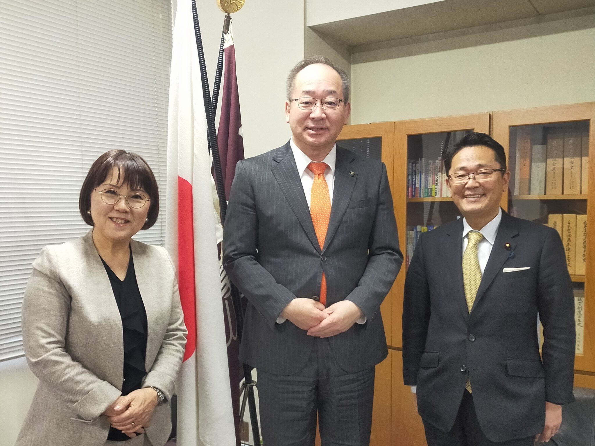 石黒市長が自民党愛知県支部連合会に年頭のご挨拶にみえました。丹羽ひでき県連会長と共に、お迎えをしました。毎年恒例ですが、今年は多くの話題で盛り上がりました。まず、国・県と連携して春日井市への補助金の獲得に努力しているので …