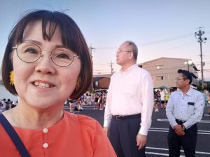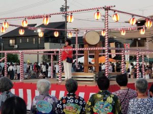 また次の日26日には、夕方から春日井市内10か所近くで夏まつりや盆踊り大会が開催され、踊りに参加しながらご挨拶させていただきました。「この猛暑の中、ご準備くださった役員の皆様方のご尽力に心より感謝申し上げます。たくさんのお子さんが参加されていて、夏休みの素晴らしい思い出になりますね。これからもお子さんの成長や地域の皆様を応援していきます。」とお話しました。