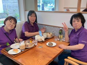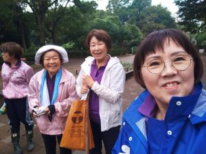 途中で枯葉の中に紛れているガラス瓶のドリンクのかけらを発見。落ち葉と同じような茶色で探すのに苦労しましたが、なんとか集めてビニール袋に集めました。ペットボトルと空き缶を袋ごとに分けて分別し、枯葉や雑草は同じ袋に入れて、皆さんで作業は着々と進みました。そんなに大量のゴミではありませんでしたが、集めてみると結構な量に。すっきりお掃除出来て、心もスッキリでした。
