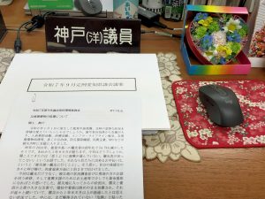 10月3日と6日の2日間、県民環境委員会が開催されました。私は2日目の環境委員会で、9月15日と16日に訪問した能登半島地震被災地に関連する質問で、「災害廃棄物処理について」というテーマで行いました。被災地支援として、国や各自治体から人命救助活動、医療活動、インフラ・ライフライン復旧、災害廃棄物処理等で、防災関係機関、民間企業、NPOなどが被災市町に支援に入りました。
