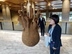 その芸術品を県民環境委員会の皆様と視察に出かけ、最初に愛知芸術文化センターを訪れました。そこで飯田キュレーターより説明を受けました。今回の芸術祭は愛知県に根差したものとして「せともの」が取り上げられ、周囲の環境から得た素材や資源を用いる地場産郷として、アーティストの新作に取り上げられたそうです。「灰は自然分解の結果生じるものではなく、人間の活動の産物なのです。