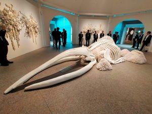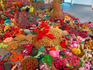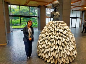 その後、展示作品を鑑賞しました。海の生物、人間の歴史、奴隷制度や開拓の歴史、自然との闘いや共生など、作品一つ一つから呼びかけるメッセージの強烈なパワーに圧倒されました。その後、瀬戸陶磁美術館、瀬戸市まちなかと移動し、数々の作品を鑑賞しました。私が特に好きだったのは、毛糸や布を用いて表現するビジュアル作家のムルヤナ氏の作品でした。すごいエネルギーを感じました。