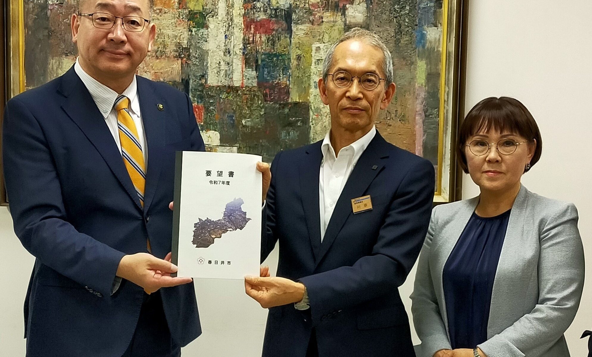 要望事項として「①北尾張中央道の整備促進 ②春日井各務原線の整備促進 ③都市型水害に対する治水対策の推進 ④都市計画道路河北線の整備促進 ⑤土地区画整理事業等への支援」の5項目を、市長から詳細の説明を加えながら要望しました。その後の意見交換で、事業が着々と進んでいることは有り難いが、進まない課題も多いので、迅速な事業推進をお願いしたいと伝えました。
