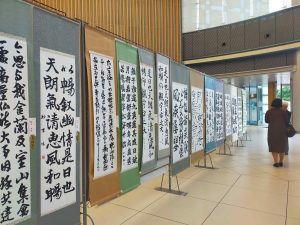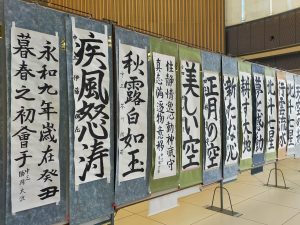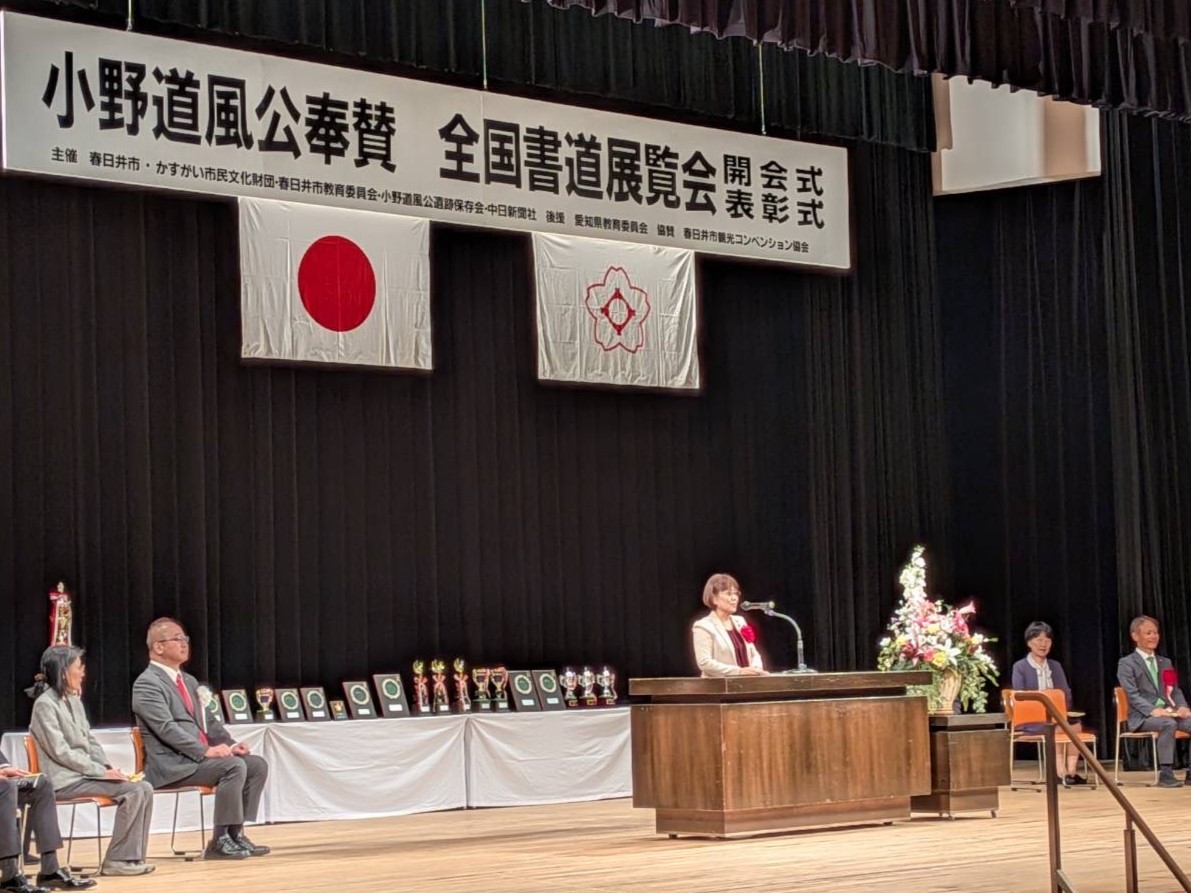 その「書のまち春日井」で道風展が開催れるようになり77回目を迎えました。5000点以上の書の作品が全国から寄せられ、文部科学大臣賞、愛知県知事賞、春日井市長賞、かすがい市民文化財団理事長賞、中日新聞社賞、愛知県教育委員会賞、春日井市教育委員会賞、愛知県議会議長賞、春日井市議会議長賞等々、素晴らしい作品を書かれた皆様が表彰されました。