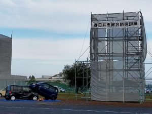 今年の春日井市総合防災訓練は、牛山公園グラウンドで行われました。今までは9月1日前後で「防災の日」にちなんで開催されていましたが、ここ数年猛暑が続き、参加される皆様の体調も考えて、11月にずらして開催することになったとのことです。各種団体や市の職員等の関係者だけでなく、地域の皆様(小さいお子さん~高齢者まで)の参加が大切なので、正しい選択だと感じました。