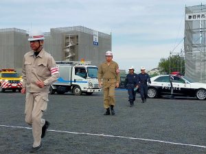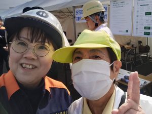 緊急地震速報により、まず安全行動としてシェイクアウトの訓練が行われました。早速、机の下にもぐり、頭を押さえて自分の身を守ります。その後、訓練が粛々と進んでいきました。まず支援本部が開設され、被害情報収集を伝達します。本部長が発表し、それぞれの持ち場で訓練が開始されました。業者の方だけでなく、地域の方々も参加しての訓練もあります。てきぱき訓練が進みました。