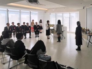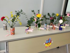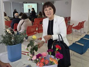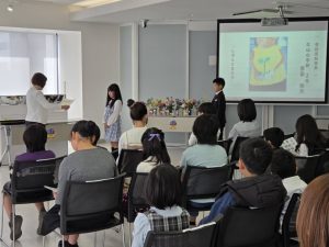 受賞されたお子さんには、最初にお花も活けてもらいます。好きなお花と花瓶を選んでもらって机に飾ります。その後、表彰式を行いました。MOA本部からだけでなく、春日井市や愛知県、教育委員会からも賞をいただき、石黒春日井市長さんやご来賓の皆様からも授与していただきました。MOA美術館奨励賞に選ばれたお二人の作品は、来年1月に行われる全国展に出展します。楽しみですね。