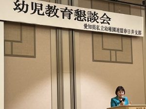 今年も愛知県私立幼稚園連盟が「幼児教育懇談会」を開催してくださいました。これは県内の私立幼稚園が支部ごとに園長先生や保護者の方々に声をかけていただき、地元の県議会議員を招待して親しく懇談をするという会です。私立学校経営は国や愛知県からの補助金で経営を行っており、そのしくみをことや増額のために議会で働きかけていることを理解していただこうと開催します。