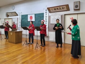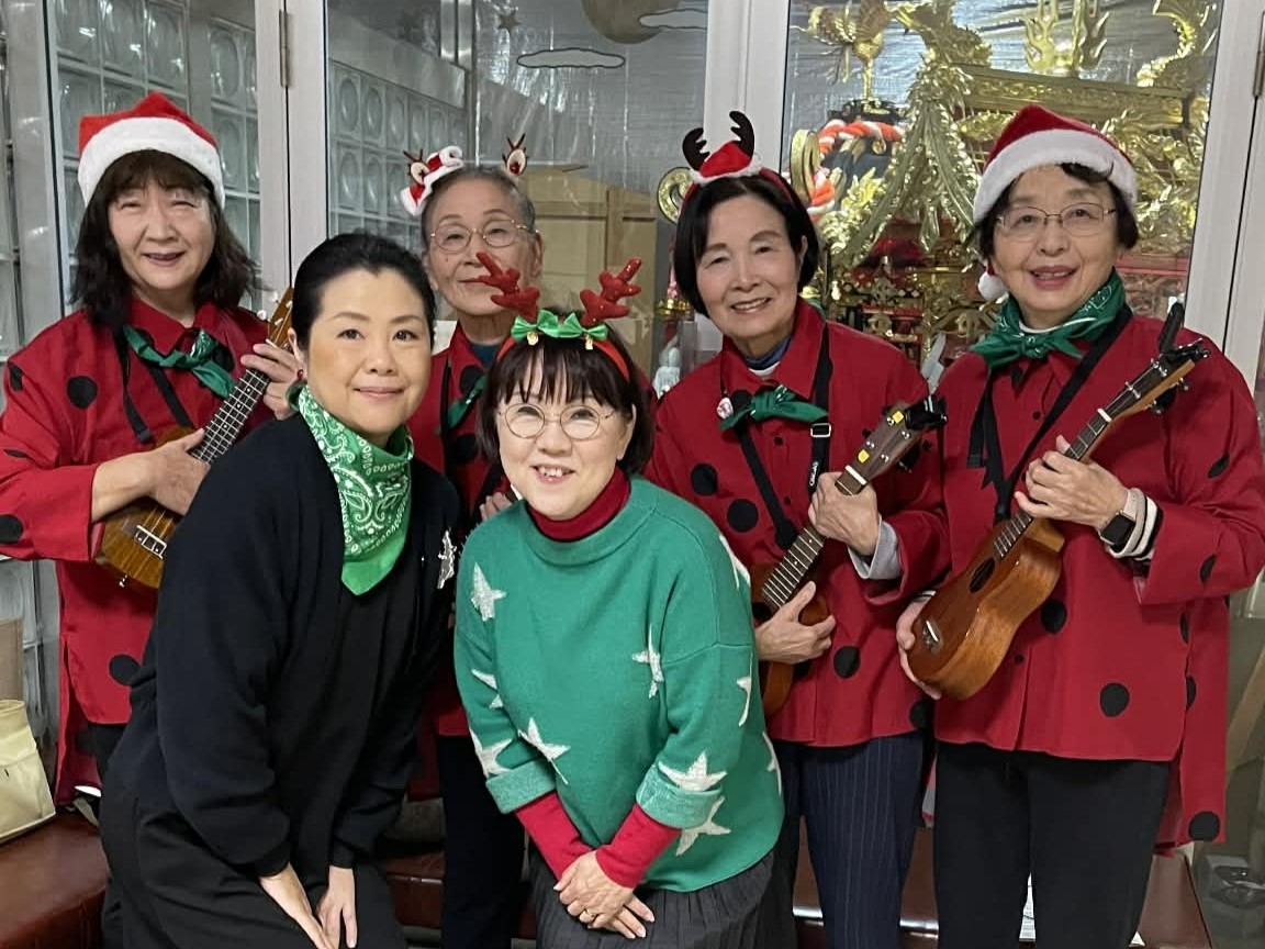 実は地元春日井市でもう一つ、会社の忘年会にお招きいただいており、とんぼ返りで春日井にもどりました。お声をかけていただくのは本当に有難いことです。さらに翌朝は「朝起き会」でのクリスマス会に参加させていただきました。ウクレレ隊の皆様が「ジングル・ベル、ルージュの伝言、きよしこの夜」の3曲を演奏と歌で盛り上げました。様々な会に参加させていただき心より感謝です。