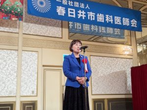 20日の幼稚園のクリスマスコンサートを無事に終えて、夜には名古屋のホテルで「春日井市歯科医師会家族会」にお招きいただき、参加しました。ご家族への慰労会を兼ねているので、小さいお子さんたちもたくさんみえます。かわいらしいドレスやスーツを身にまとい、華やかな雰囲気で盛り上がっていました。会長のご挨拶、連盟会長、医師会会長・薬剤師会会長、春日井市長の祝辞と続きます。