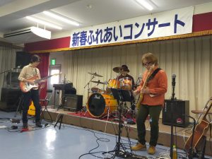 午後からは地元春日井市にもどって、六軒屋公民館にて毎年開催される「新春ふれあいコンサート」に参加させていただきました。今年は春日井市に在住されていたギターミュージシャンの方とそのメンバーのバンド演奏でした。始まる前に石黒市長と丹羽代議士と共に、私もご挨拶の機会をいただき、音楽の素晴らしさについてお話し、その後、皆様と一緒に迫力ある演奏を楽しみました。