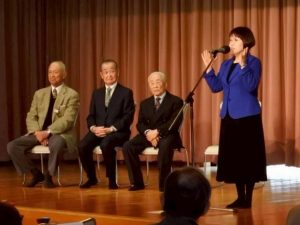 懇親会は鳥羽シーサイドホテルで昼食を取りながら皆様と盛り上がります。最初に式典を行いました。参加してくださった市議会の先生方のご挨拶、後援会長に続き、私も感謝の思いを伝えました。毎年、旅行の募集に走ってくださる役員の皆様、そして参加してくださった皆様へのお礼、さらに衆議院選挙と市長選挙のお願いを伝えました。皆様の笑顔の為にこれからも頑張りますとお話しました。