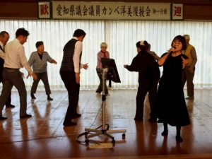 乾杯の元気な発声と共に、お食事タイムの始まりです。ここのホテルはゆったりと温泉に入ることも出来ます。カラオケで盛り上がる中、仲良しやグループの皆様と一緒に写真を撮らせていただきました。同じグループで撮りたいと、わざわざテーブルの反対側に来てくださって、本当に感謝感謝です。最後には「ダンシングヒーロー」と「河内おとこ節」の盆踊りで会場が盛り上がりました。