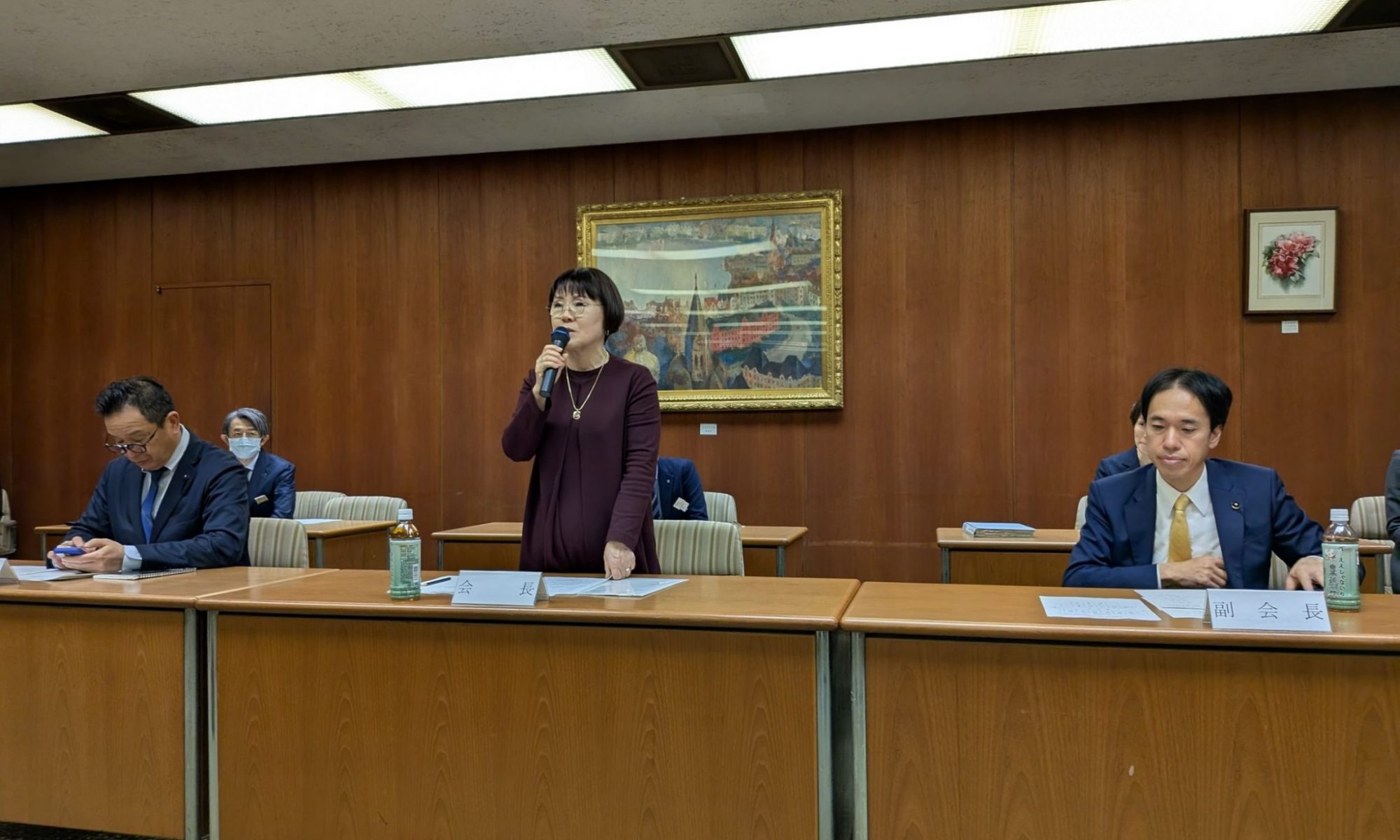 9日の議案質疑終了後、看護議員連盟総会が開催されました。初めに会長の私から挨拶をしました。「この時期は三寒四温でぽかぽか陽気だったり、冬の寒さに逆戻りしたり、また花粉が飛ぶ時期に加え、ウイルスなどの感染症は季節に関係なく流行するため、医療現場の慌ただしさは年間を通じて収まることがありません。現場で対応していただいている看護師の皆様は大変だと思います。」